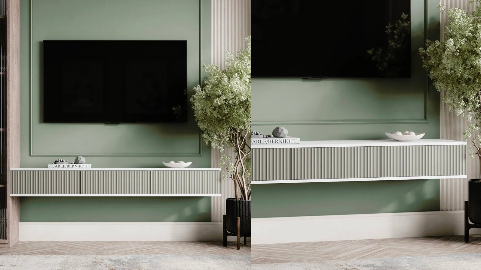 Le meuble TV mural Milos marie parfaitement fonctionnalité et esthétique contemporaine. Conçu pour les intérieurs modernes, il s’installe au mur pour libérer de l’espace au sol tout en apportant une solution élégante de rangement pour vos appareils multimédia. Sa finition mate au toucher doux s’accorde à merveille avec des décors épurés ou minimalistes.